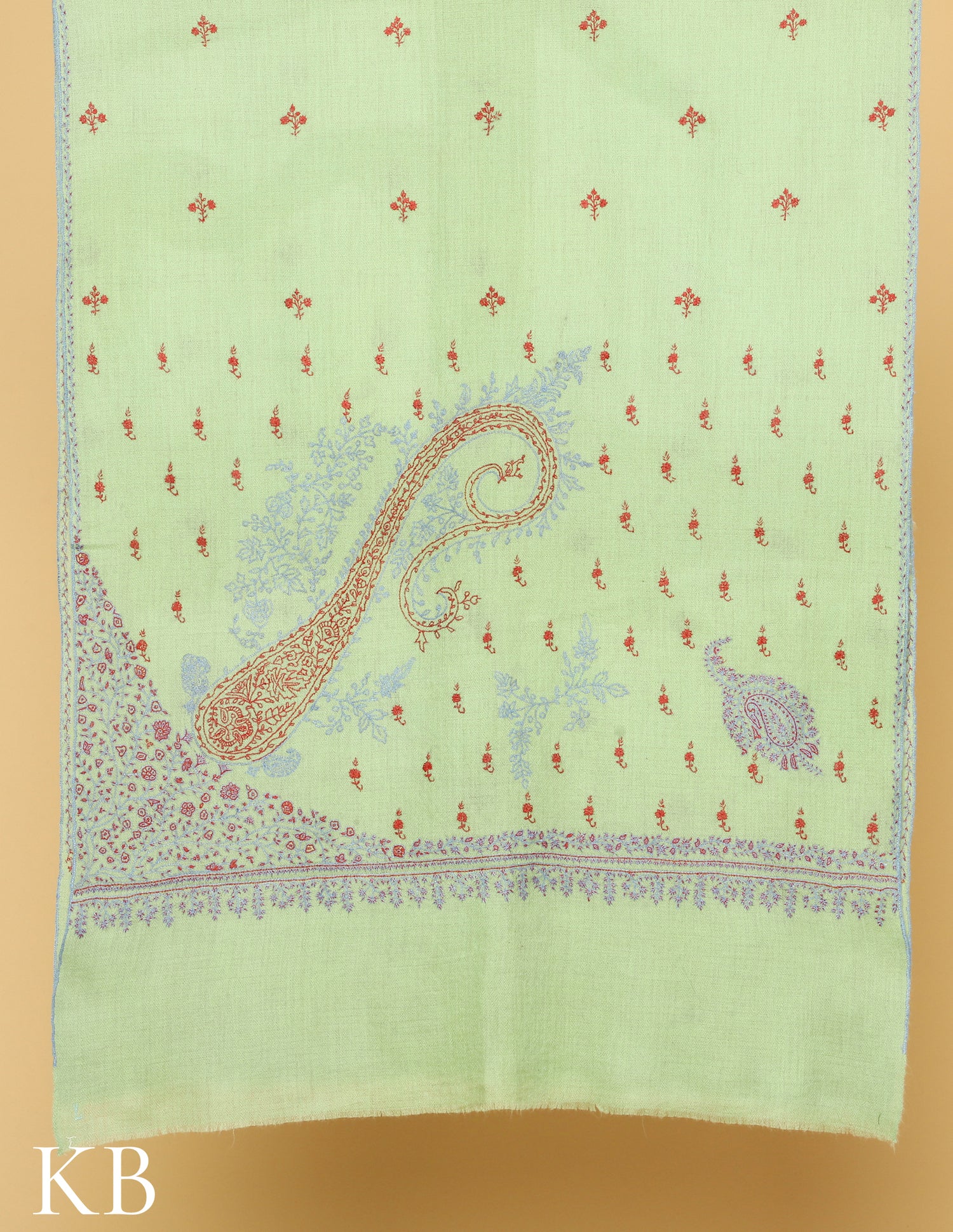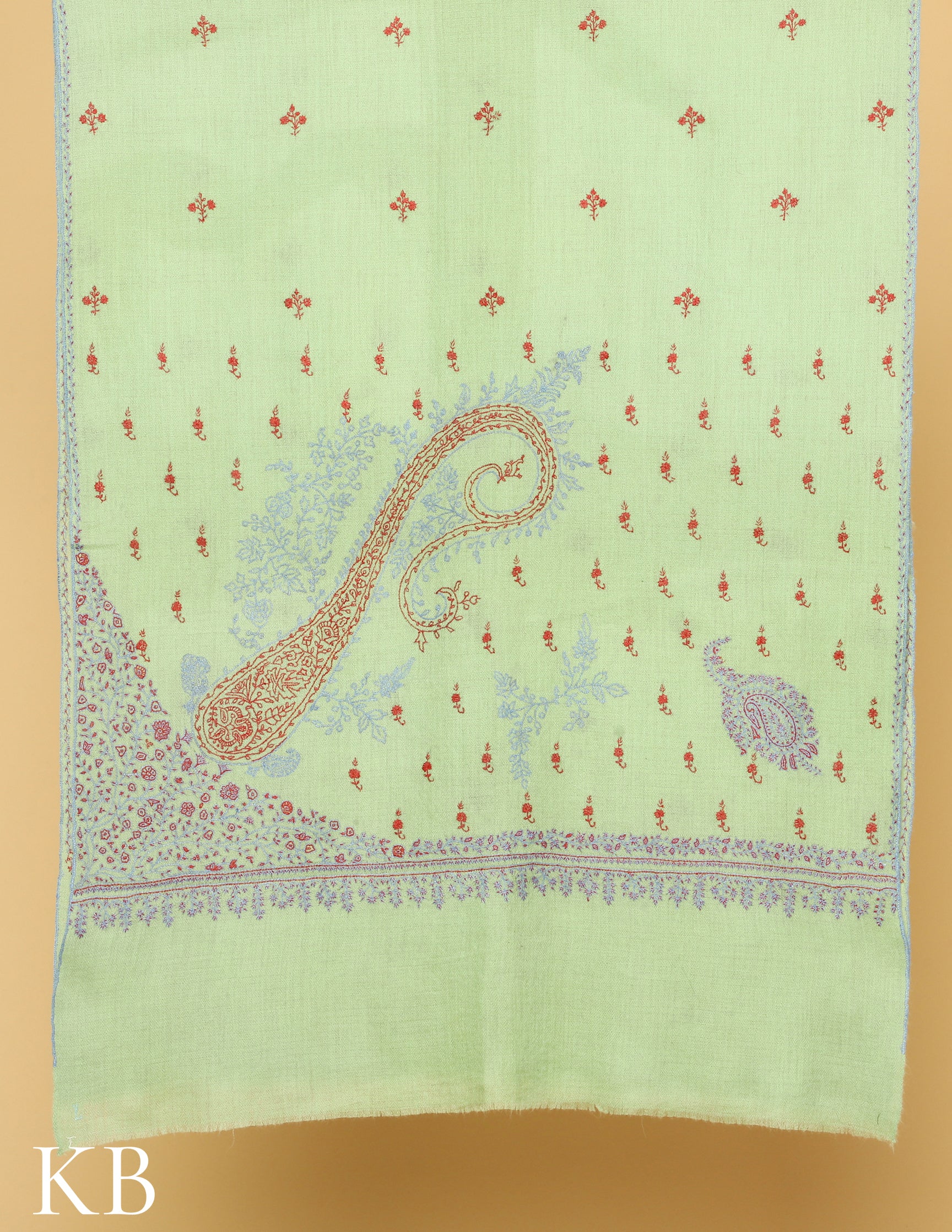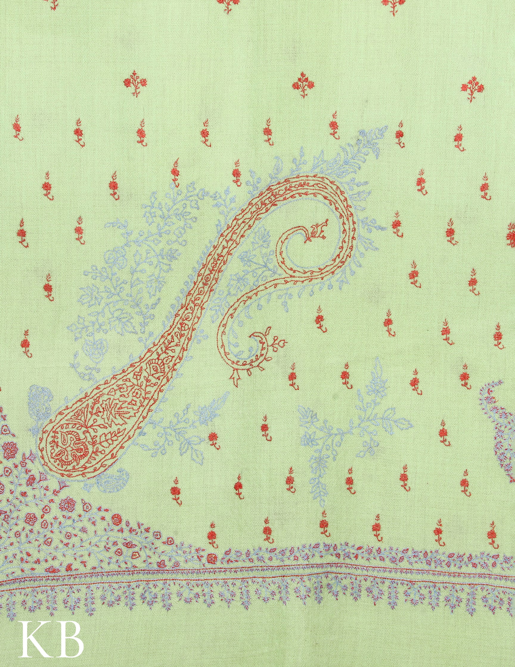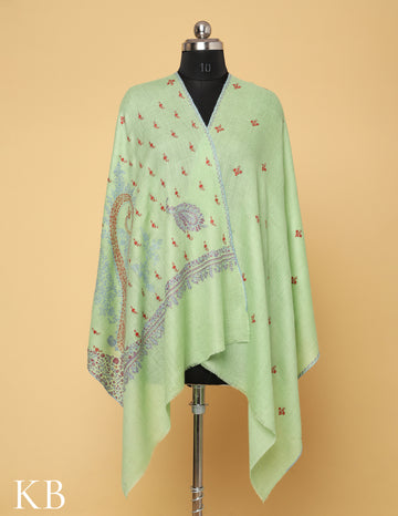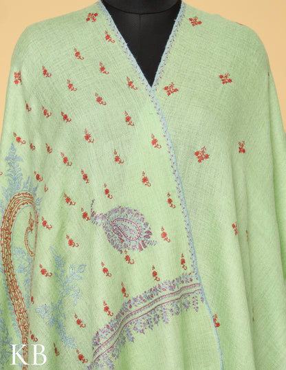 Pista Green Sozni Embroidered Pure Pashmina Stole