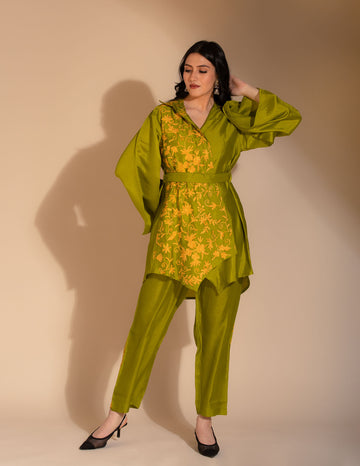 Ruhaniyat Aari Embroidered Silk Kimono Cordset