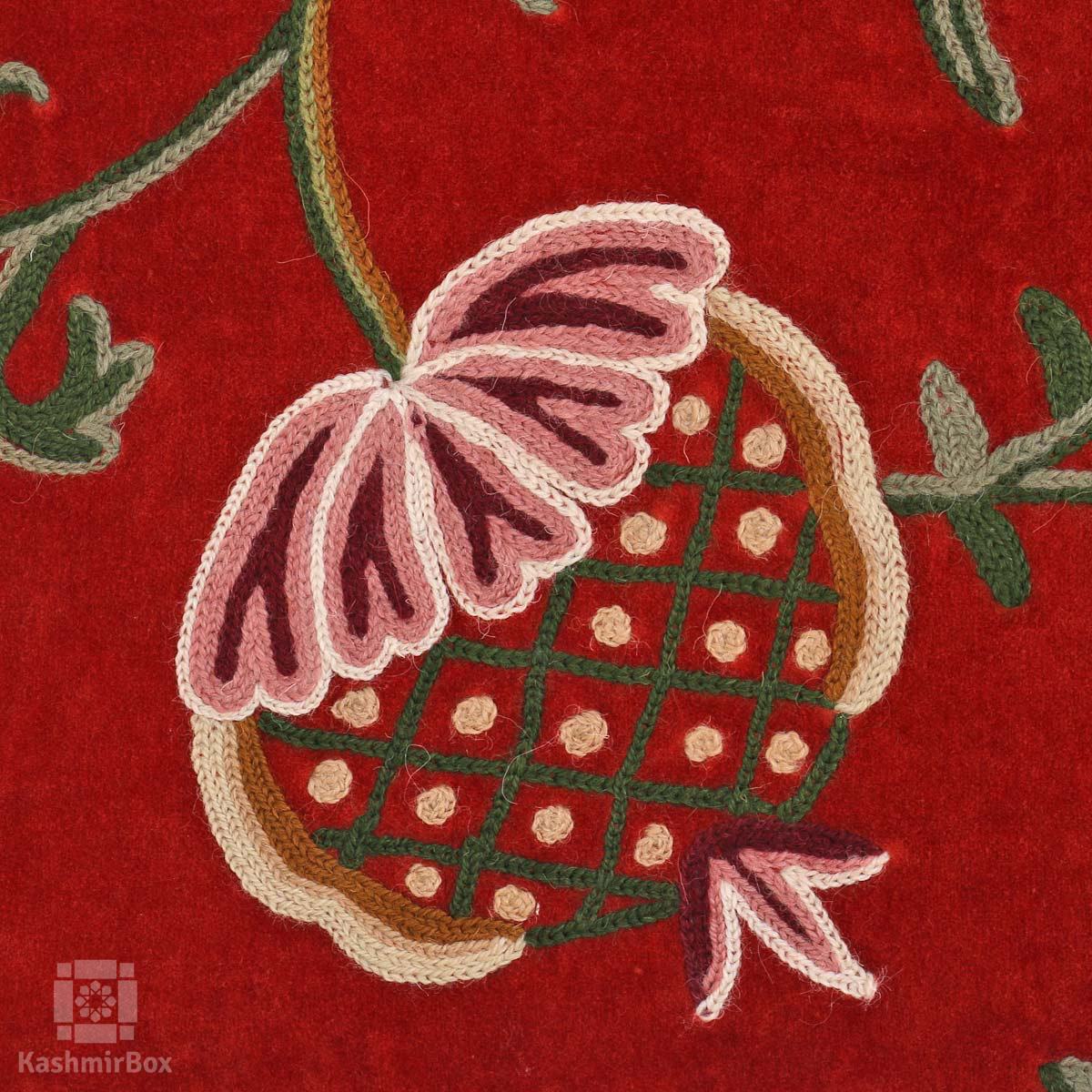 Handpicked for your contemporary taste are jovial red curtains brought to life by brazen chinar leaves and flowers handcrafted by master artisans of Kashmir Valley in the legendary beauty of Kashmiri crewel embroidery. The unstitched embellished fabric can be tailored into a curtain of measurements of your own choice. The fabric used is a blend of velvet and cotton, which is breezy light and makes a perfect drape for the summers. Let it add a hint of art to your abode and brighten it up.