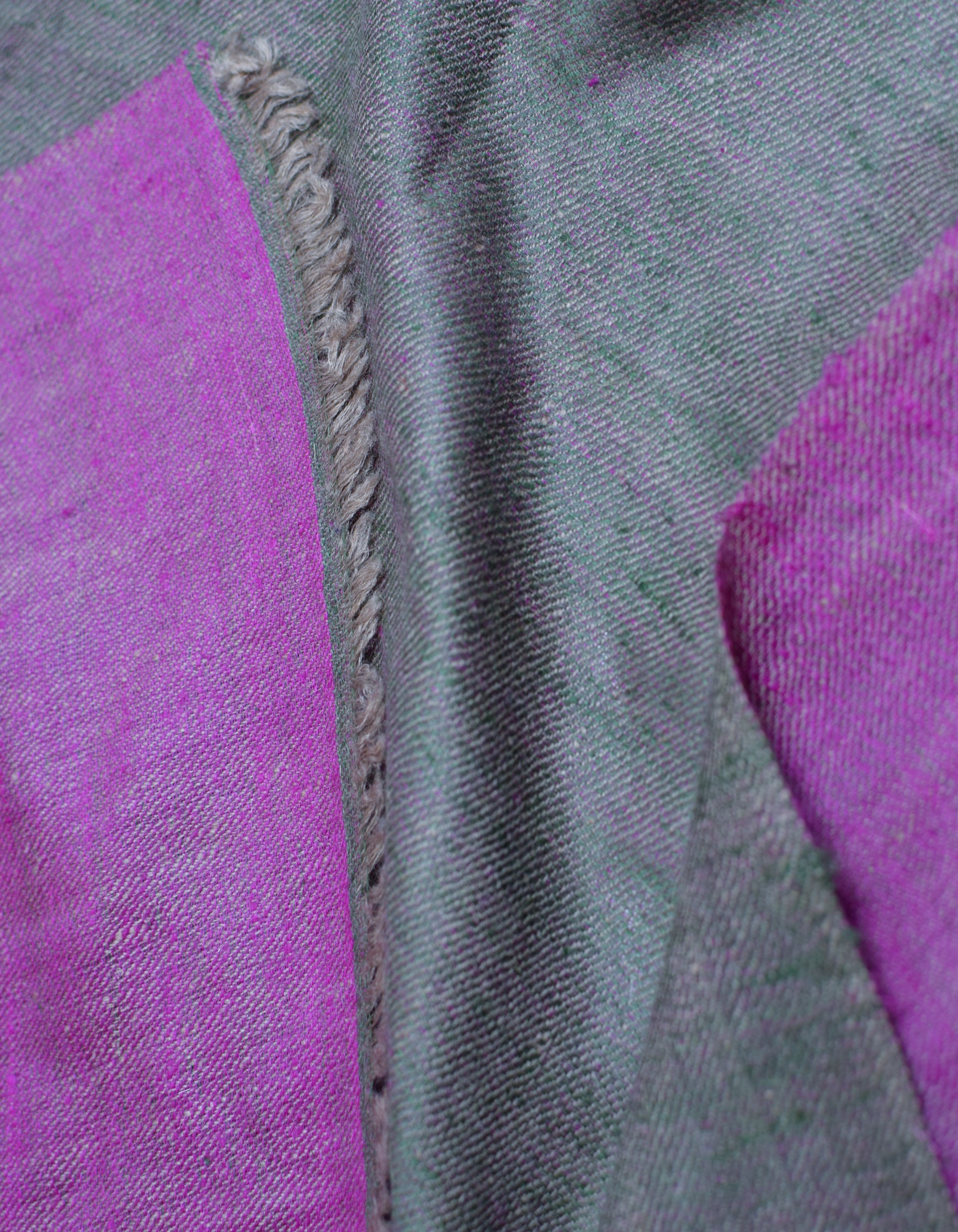 COLOUR: A dual-coloured cashmere pashmina featuring old saffron lavender and pastel khaki.