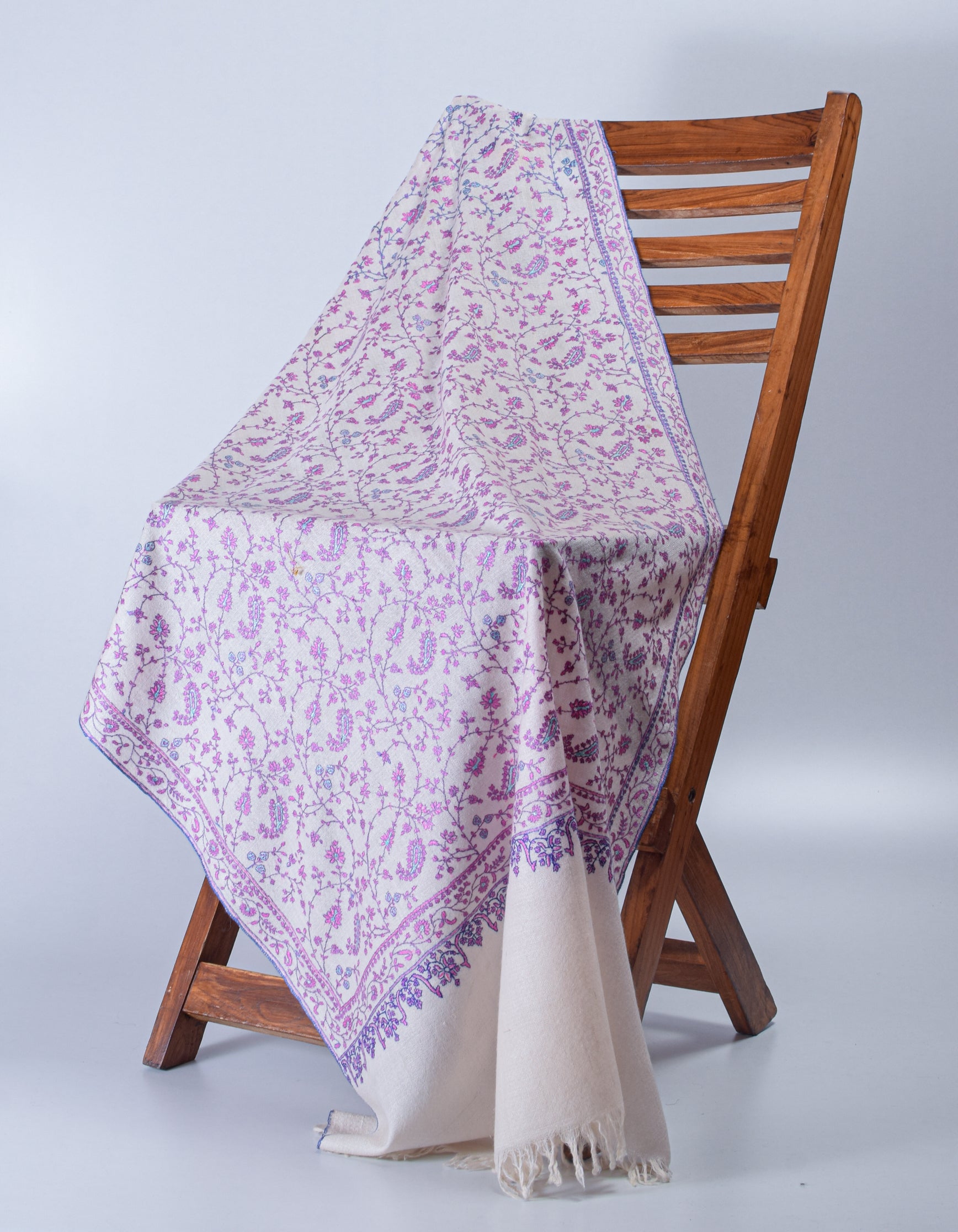 Classic Cream Handwoven Sozni Jaali Embroidered Cashmere Pashmina Stole