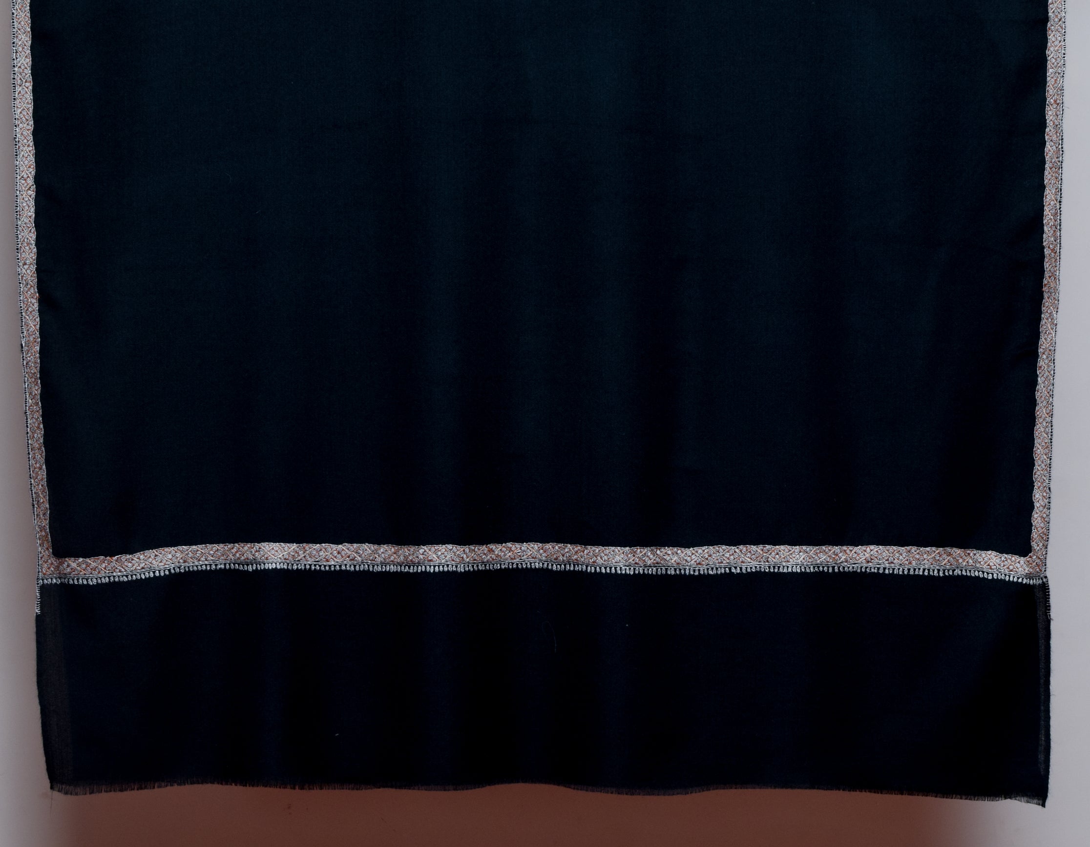 CRAFT FORM : Woven on a handloom and adorned with fine hand sozni embroidery, crafted using traditional Kashmiri techniques.