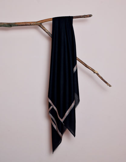 Jet Classic Black Handwoven Sozni Embroidered Cashmere Pashmina Shawl