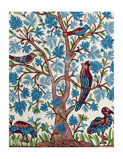 The Kashmir Valley—a place where different cultures and ideas have come together along the Silk Route—has kept the art of chain stitch alive for over 700 years, with every pull of the yarn forming a chain that remains forever anchored to Kashmir's heritage. The chain stitch rug, locally known as Jalakdozi, has origins that date back more than 2,000 years, making it one of the oldest crafts.