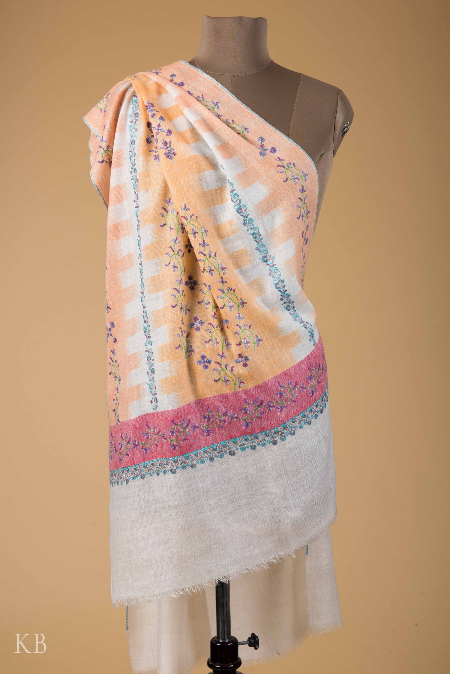 Sozni Embroidered Ikkat Design Pashmina Stole