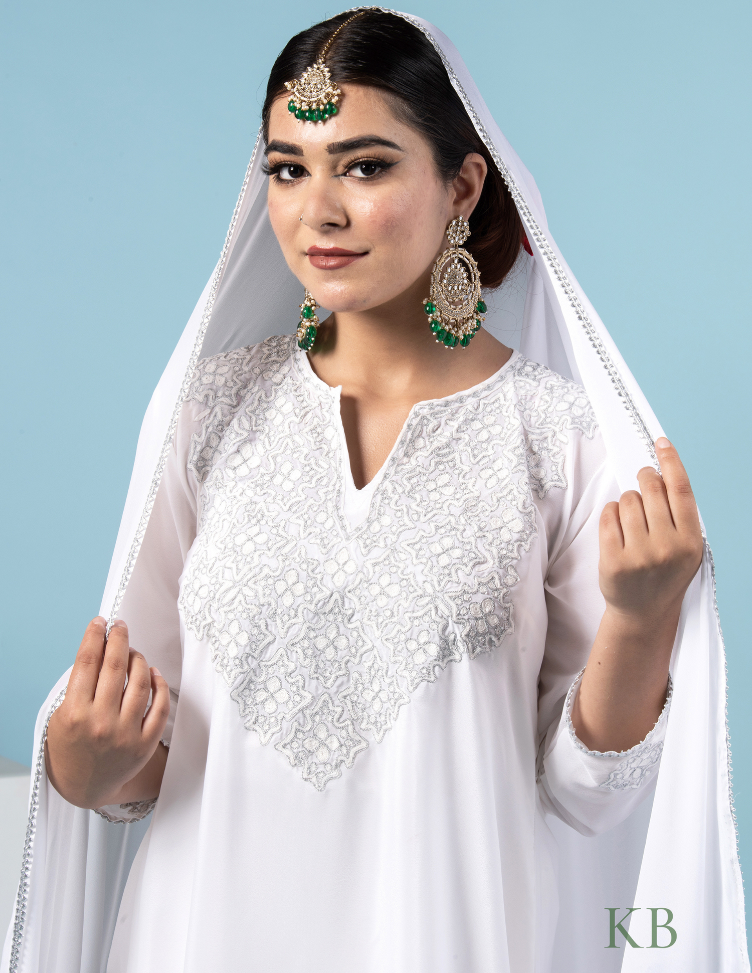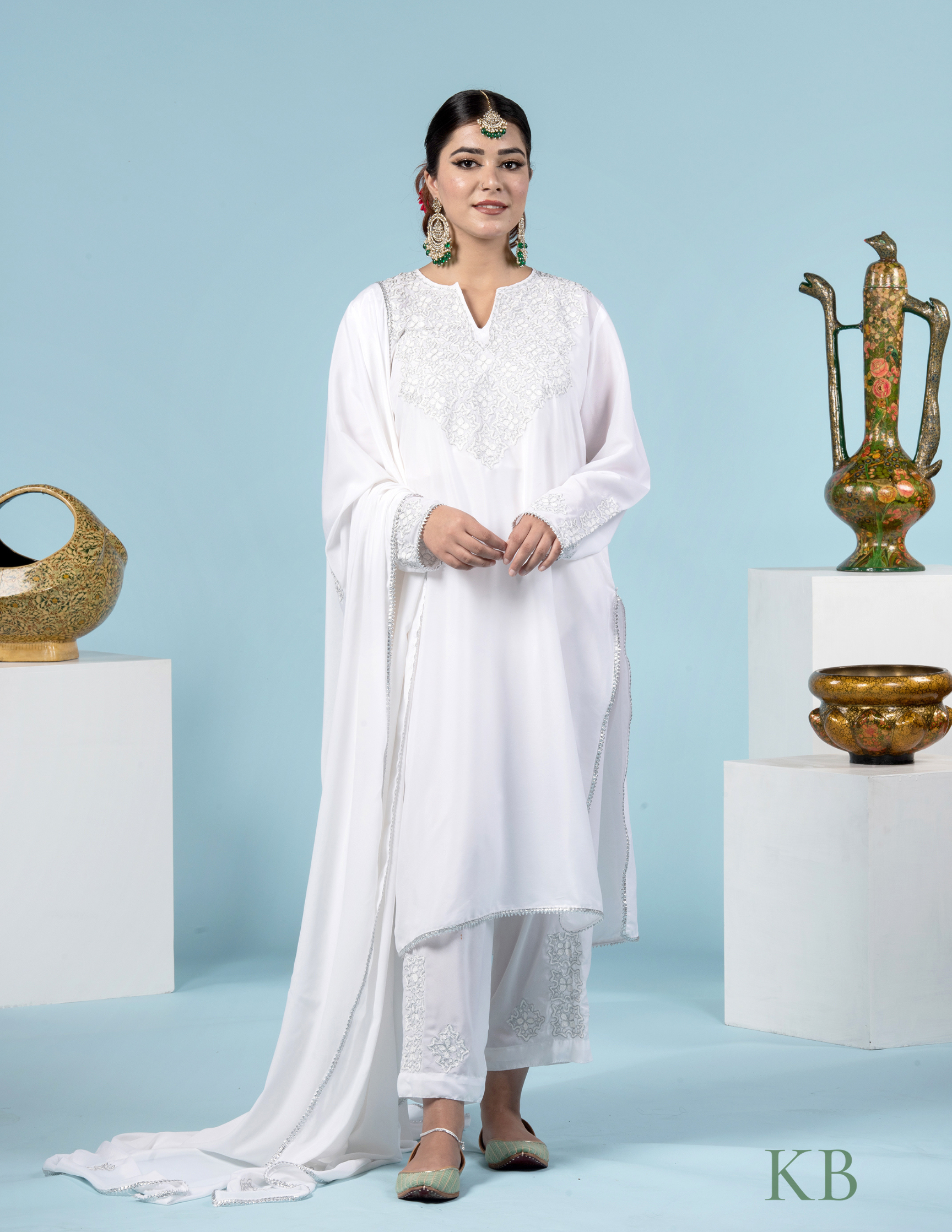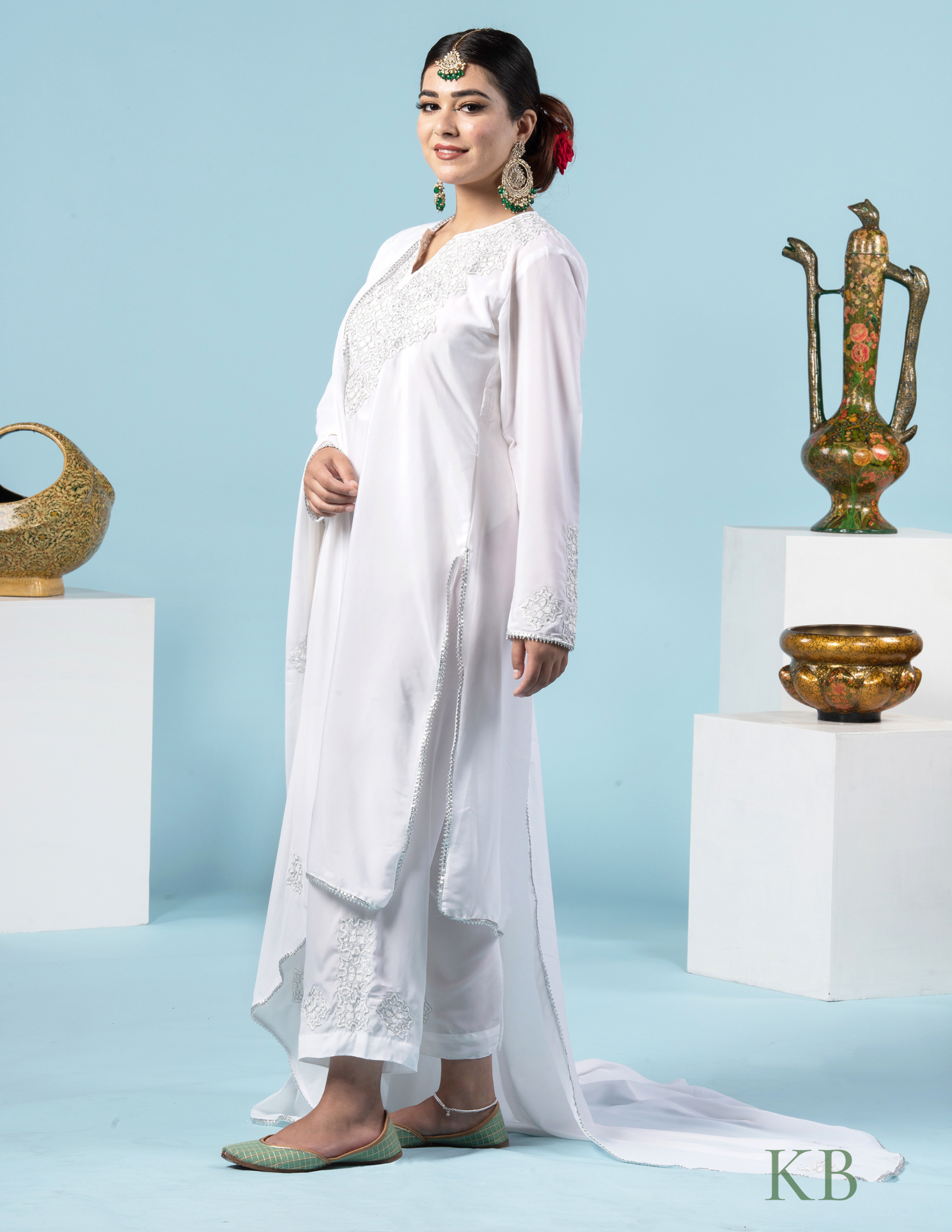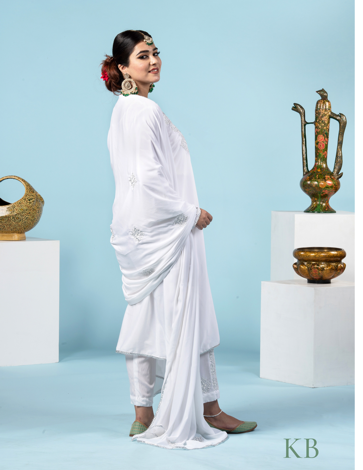 Zehra Aari-Zari Embroidered White Crepe Suit with 2.5 Meters Dupatta