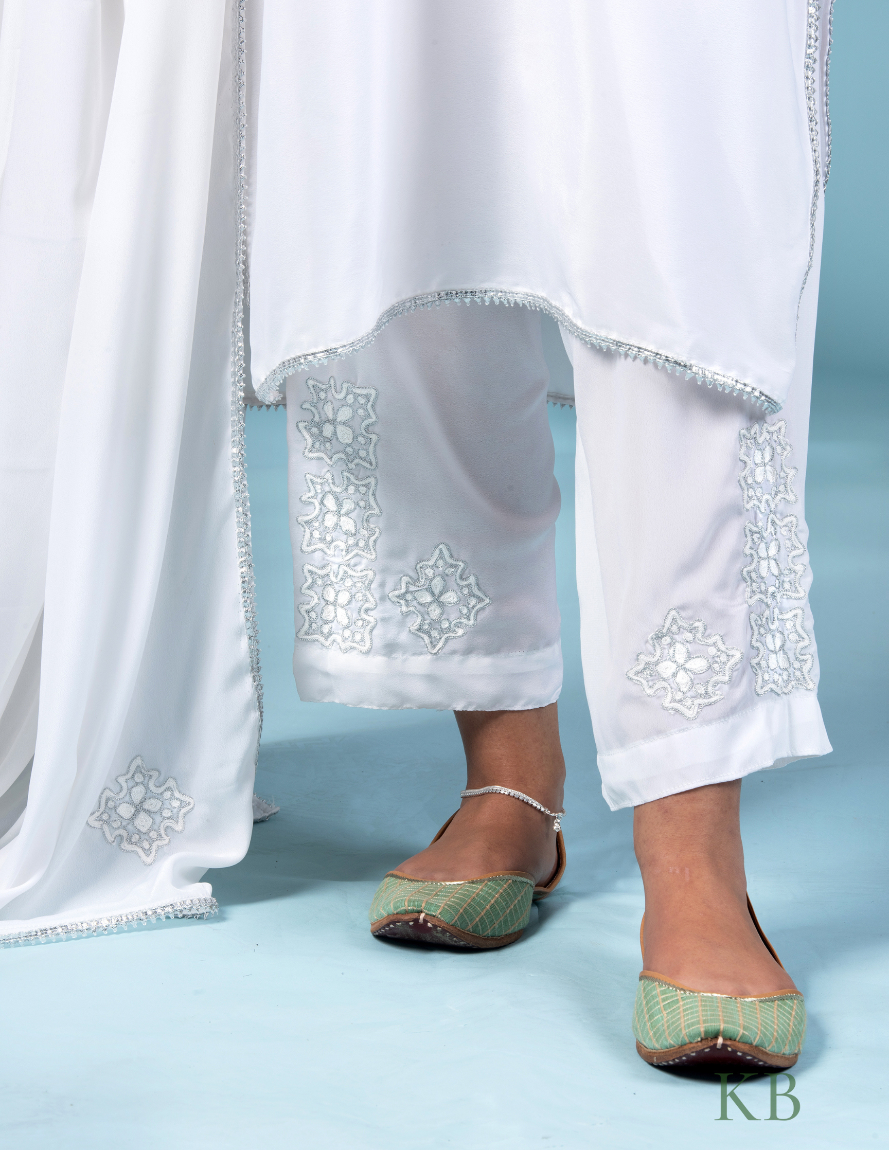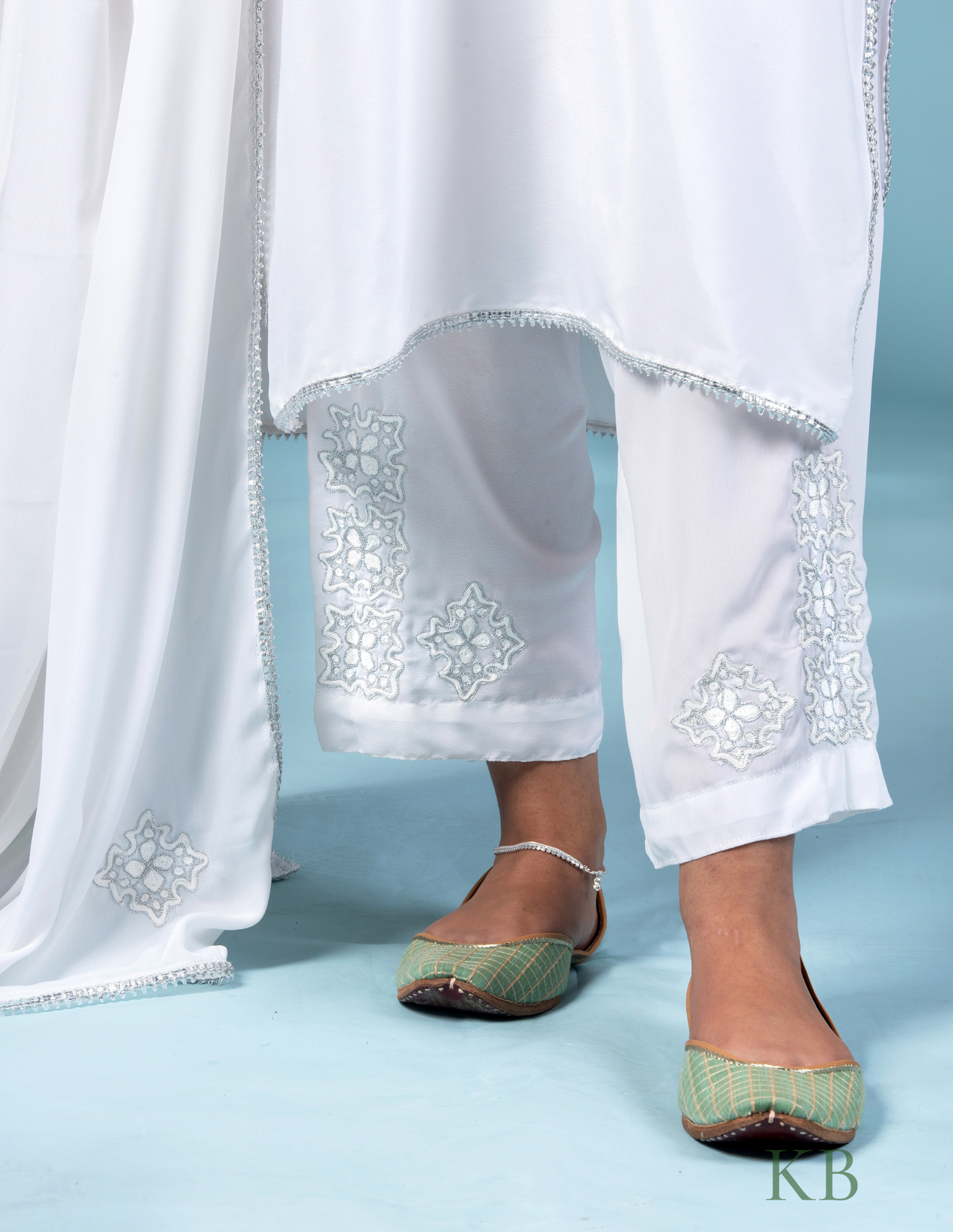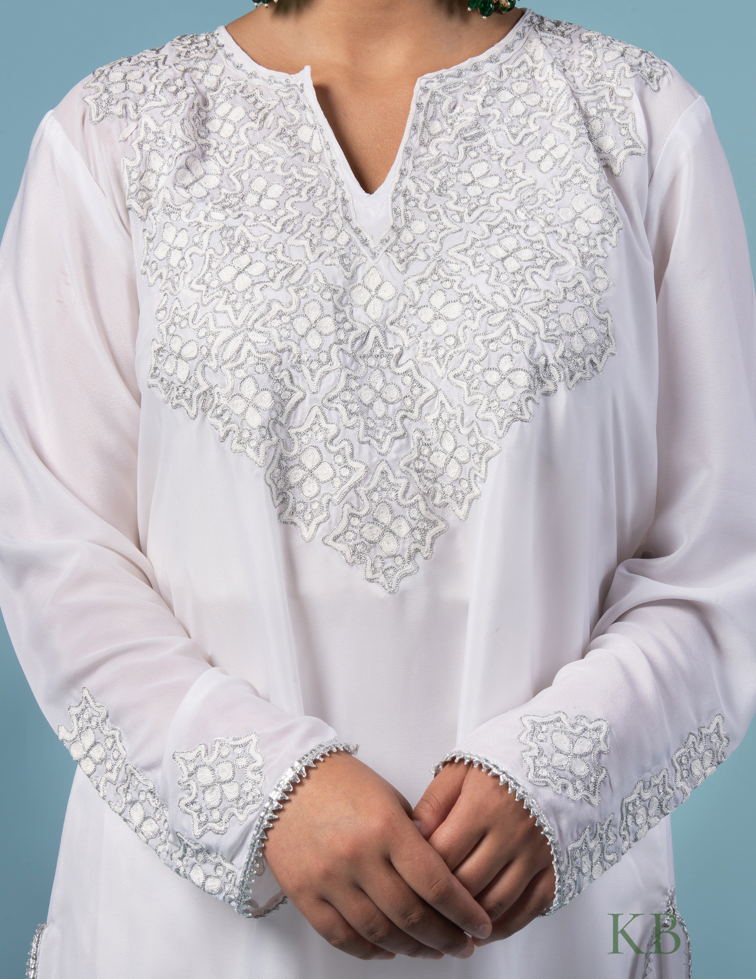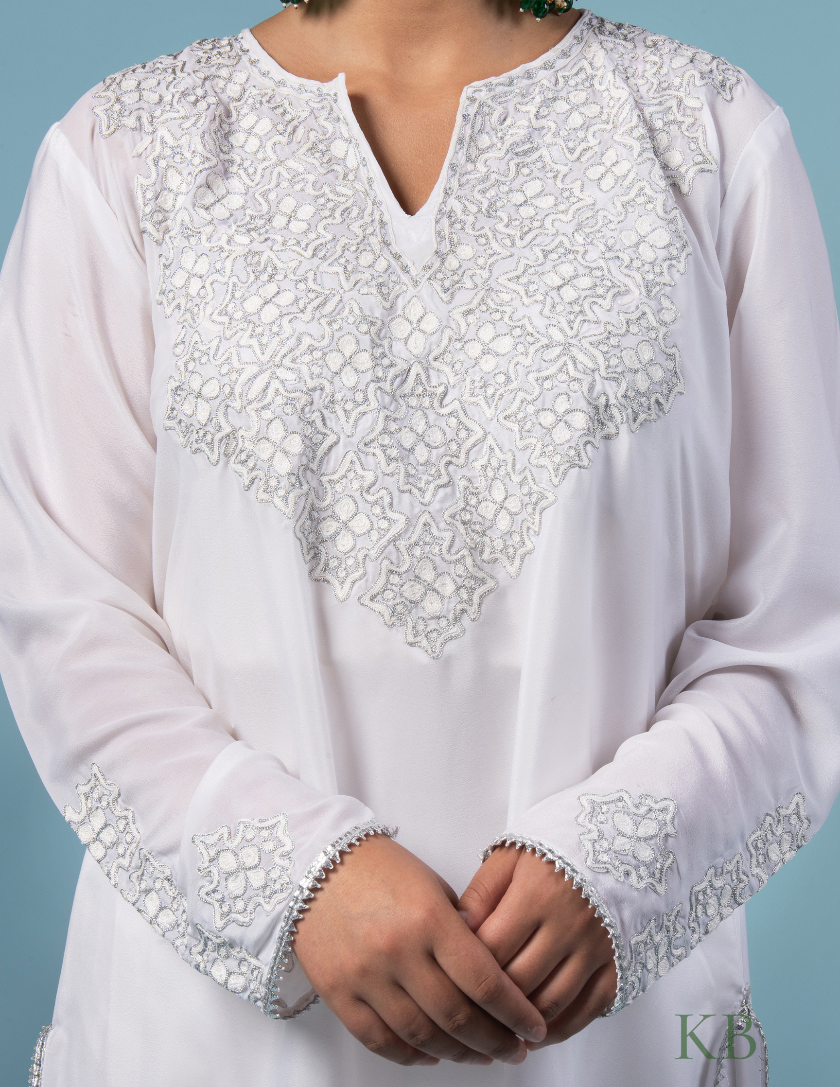 Zehra Aari-Zari Embroidered White Crepe Suit with 2.5 Meters Dupatta